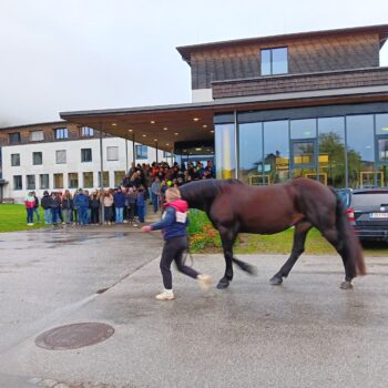 Heuer wurde am 13. Mai der Silomais am Stegfeld angebaut. Die Saatbeetbereitung übernahmen dabei – unter Anleitung von FL Fallenegger – die SchülerInnen der 3. Klassen. Als Hauptsorte wurde die frühreife Biomaissorte „Amarola“ (FAO 210) gewählt. Als Zweitsorte schickte uns der Händler versehentlich einen Silomais mit einer Reifezahl von 380 – für den Standort Bruck…