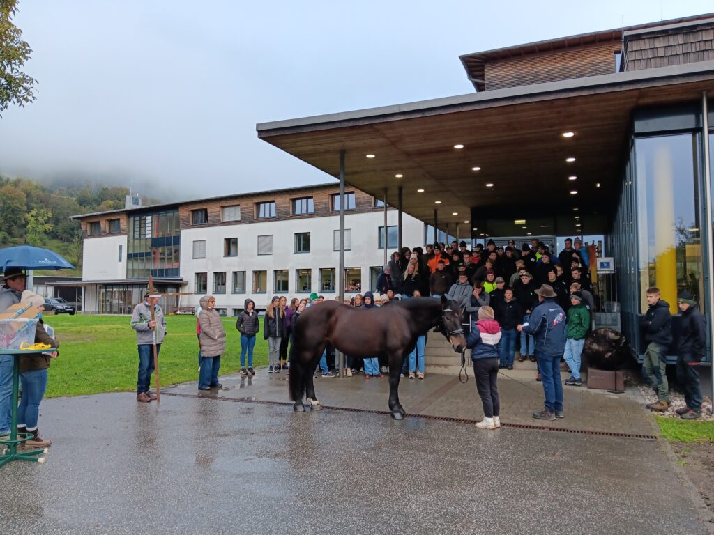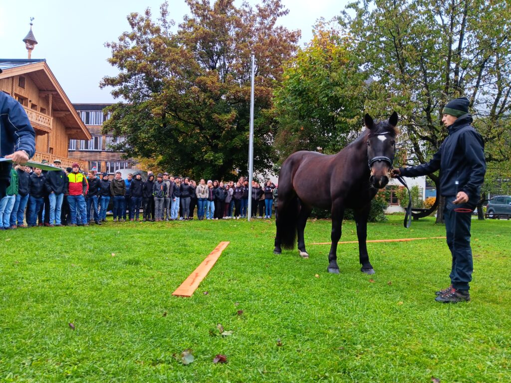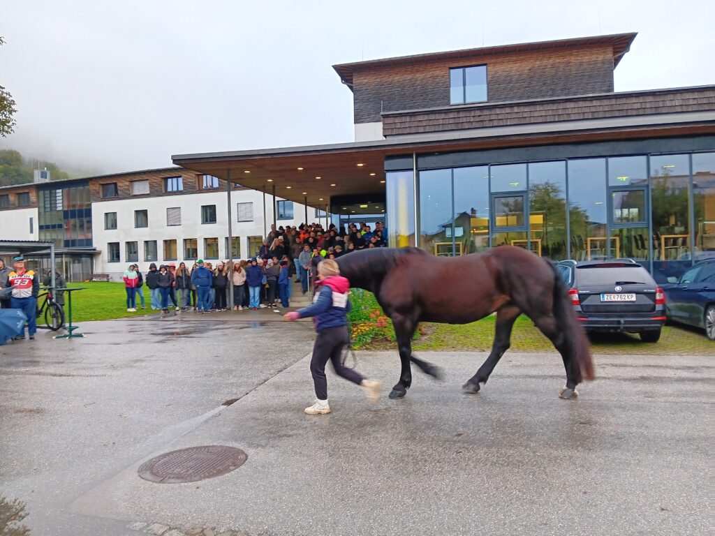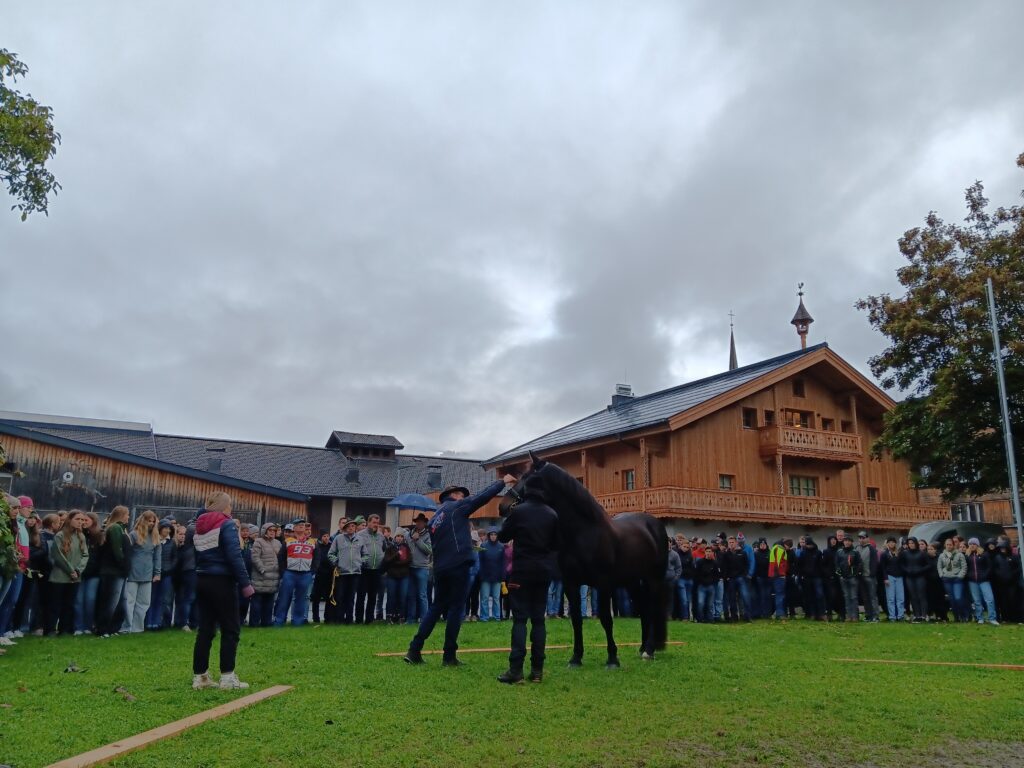 Einige Klassen der LFS und BHM Bruck kamen Dienstagvormittag in den Genuss bei der Noriker Stutbuchaufnahme direkt an der Schule dabei zu sein. Der Geschäftsführer des Landespferdezuchtverbandes Salzburgs, Dipl. Ing. Johann Wieser, erklärte den interessierten Schülerinnnen und Schülern worauf es bei der Beurteilung ankommt, welche Farbschläge es bei den Norikern gibt und wie sich die Norikerzucht im Laufe der Jahrhunderte verändert hat.