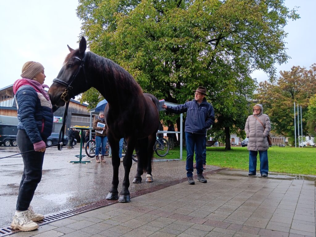 Die Beurteilung durch die erfahrenen Prüfer ging dann sehr schnell – ihrem geschulten Blick entging kein Makel. Ein edler Anblick war die Gangbeurteilung im schwungvollen Trab durch den Schulhof. Spannung dann bei der Gesamtpunkteverkündung: die Stute darf zur Eliteschau & finalen Stutbuchaufnahme am 19. Oktober in Maishofen!
